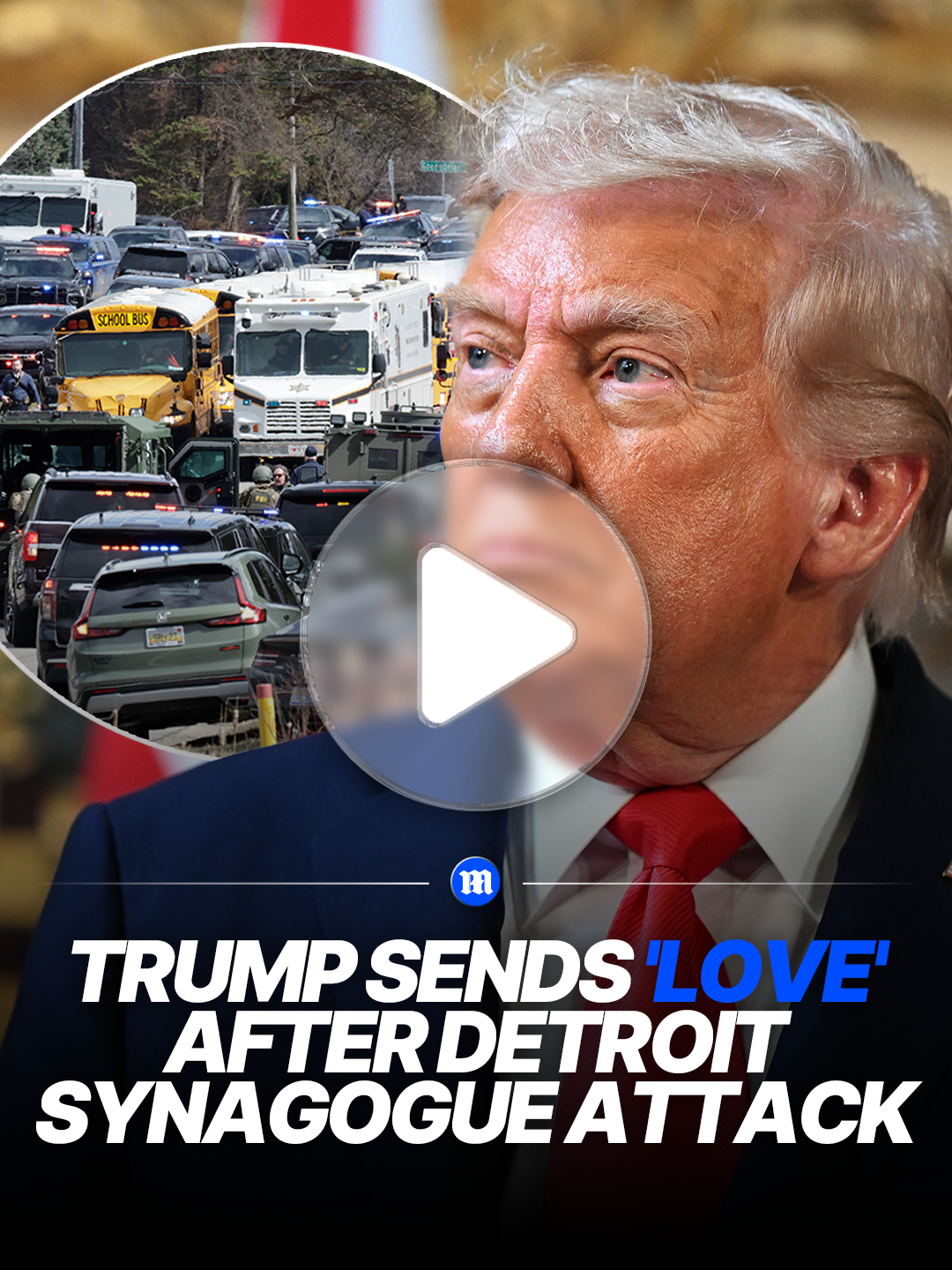 President Trump says he was briefed on a Detroit Synagogue attack yesterday. One security officer was struck and injured by the vehicle, and the attacker was shot dead by a guard at the synagogue. #trump #detroit #news #usa