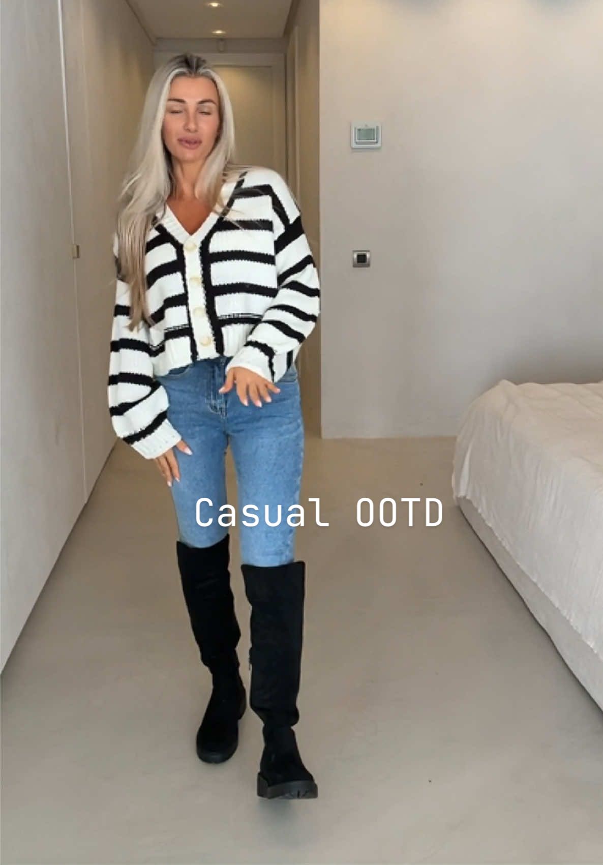 Wearing jeans in a size XS and cardigan is a size medium 🫶🏻 #tiktokmademebuyit #treatyourself #blackfriday #dealdrops #christmasvibes