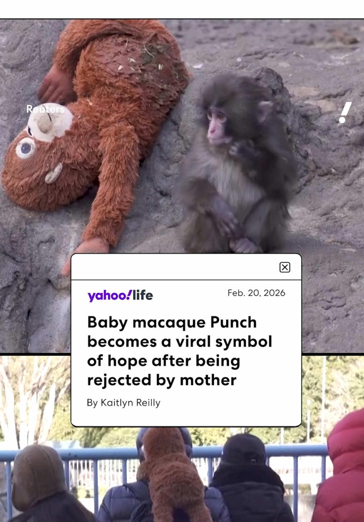 Punch has taken over the internet. ❤️ The baby macaque, who was rejected by his mother, went viral after finding a friend in a stuffed animal. His story has attracted crowds to a Japanese zoo, which confirmed he's doing better socially. “Punch is gradually deepening his interactions with the troop of monkeys," the Ichikawa City Zoo wrote on X. ##macaque##animals##news##japan ♬ original sound - Yahoo News
