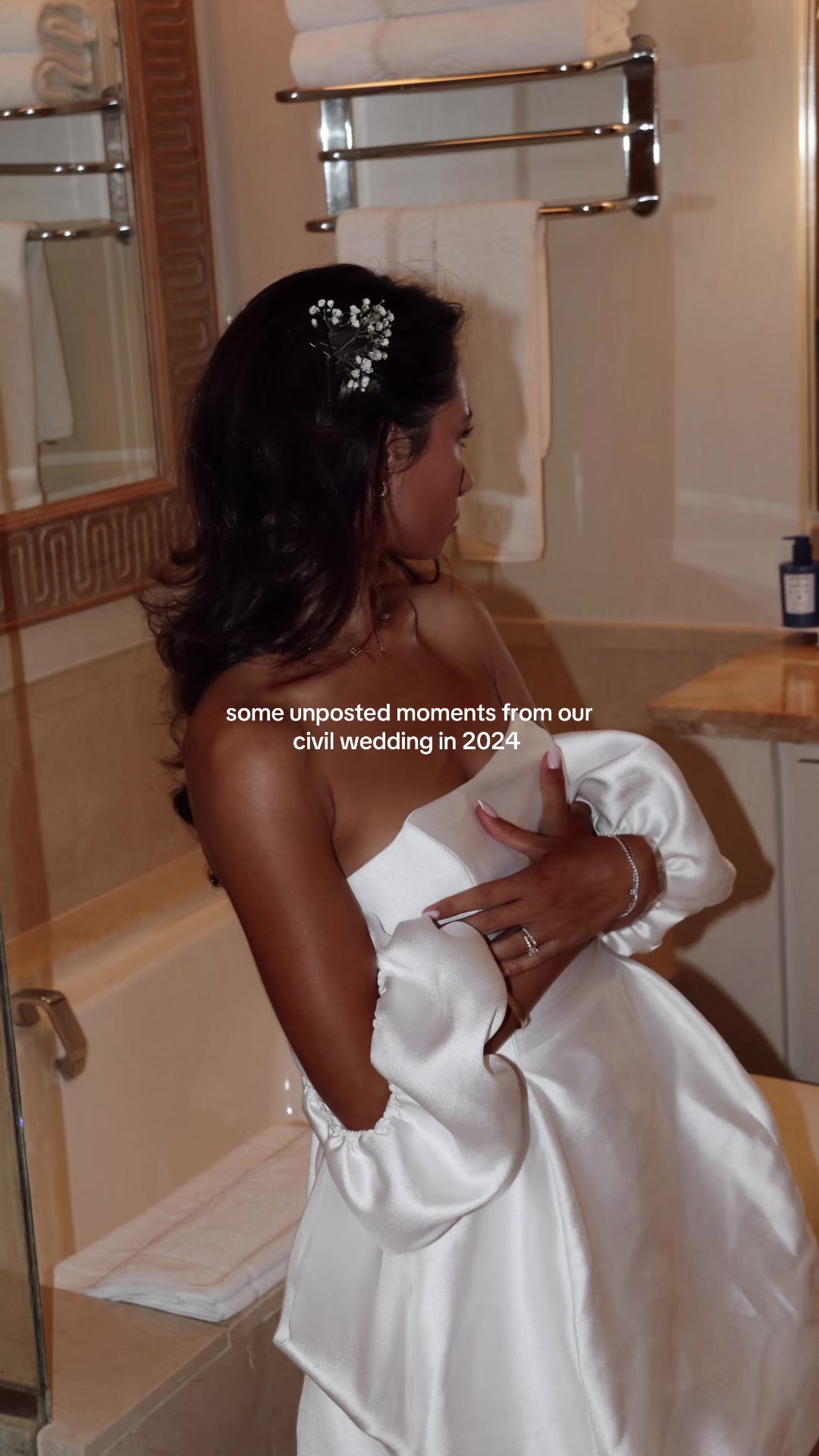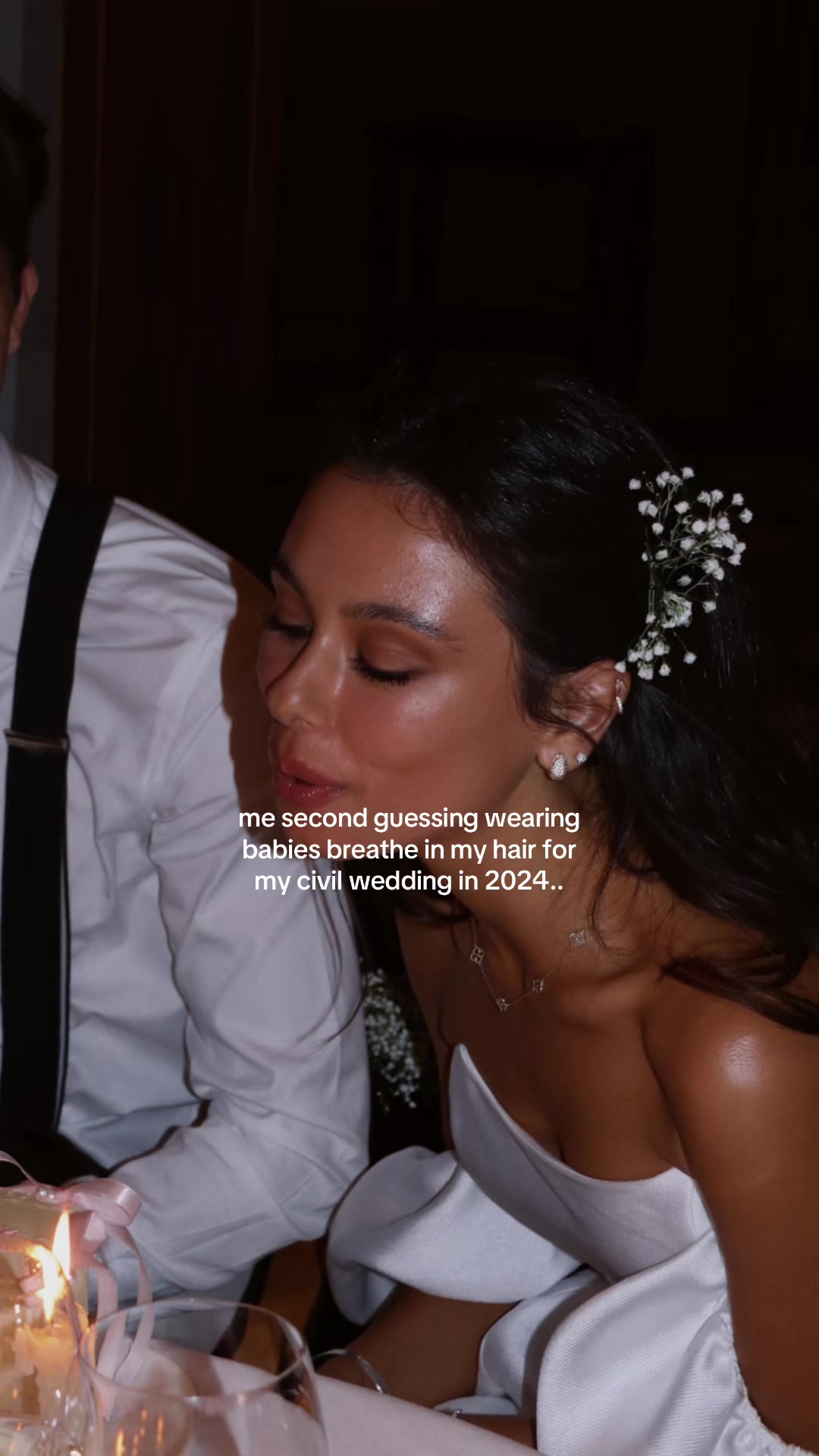 I literally took them from my bouquet and pinned them to my hair in the car on the way to the court house 🥹 #alexandraleclerc #weddinghair #babiesbreathwedding #alexandrasaintmleux #civilwedding @Alexandra Leclerc