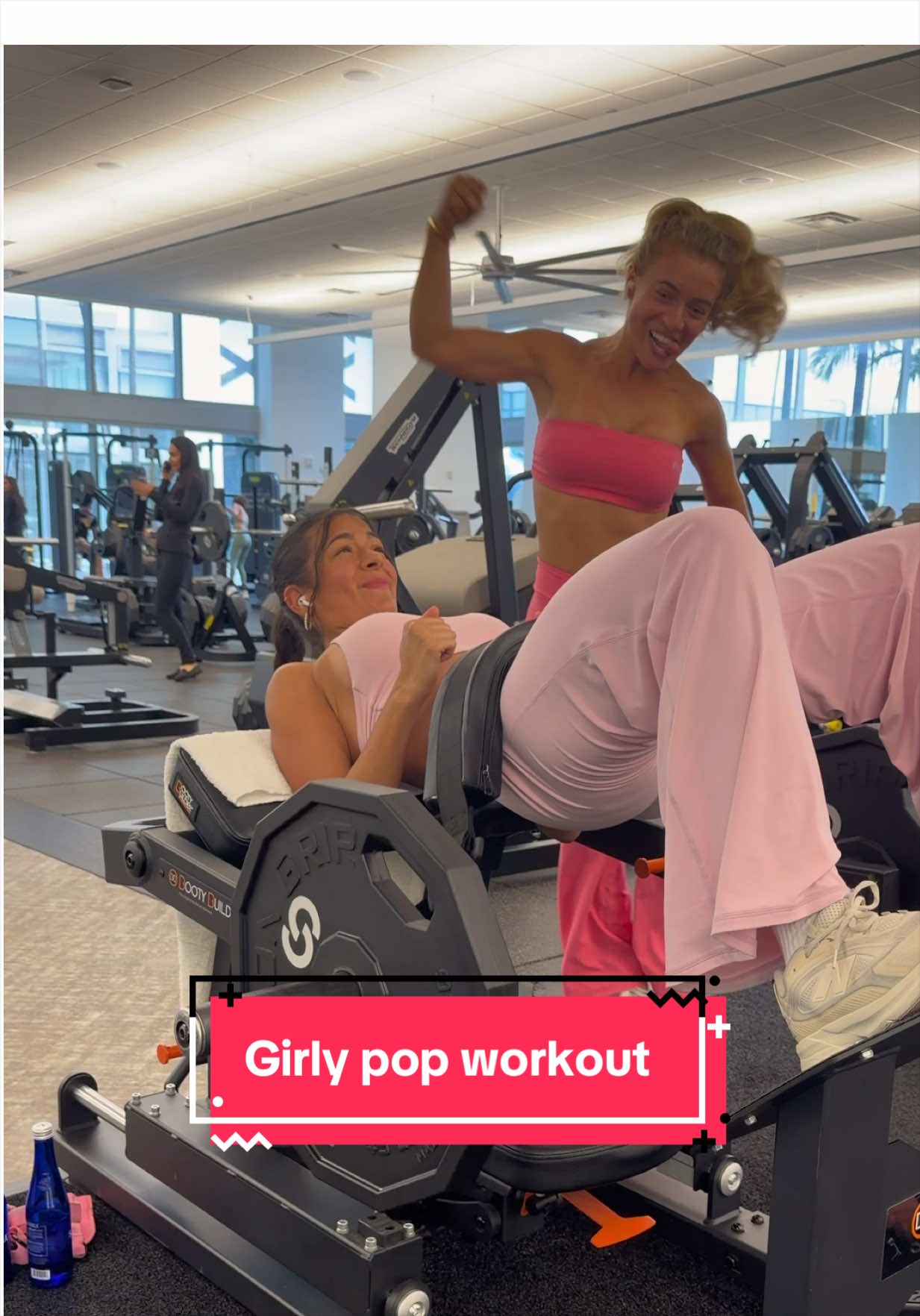 Time for a girly pop workout vlog💞 first off, we had to run through an entire rainstorm just to get to the front door😅😅 we did a leg day of course booty pump is necessary and we also wore pink, which is also necessary. The workout was: Warm up treadmill 10 min Hip thrusts 3x10 Cable kickbacks 3x10 (each leg) Leg curls 3x10 Sumo kb squat 3x10 RDLS 3x10 We added a different variations and used different machines, but these were the basics of our workout💞