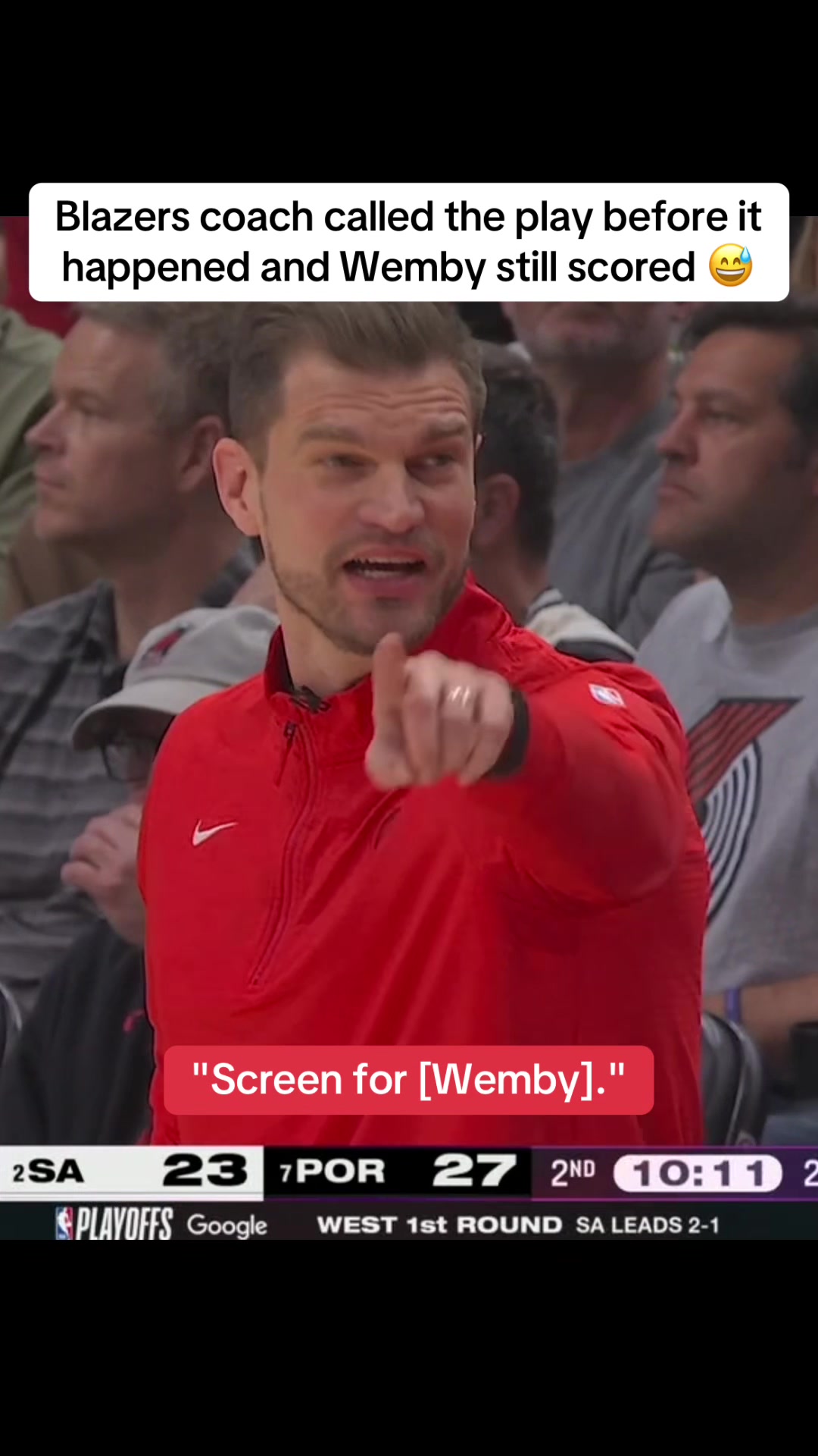 Tiago Splitter saw it coming 😂 #nba #basketball #wemby #nbaplayoffs #trailblazers