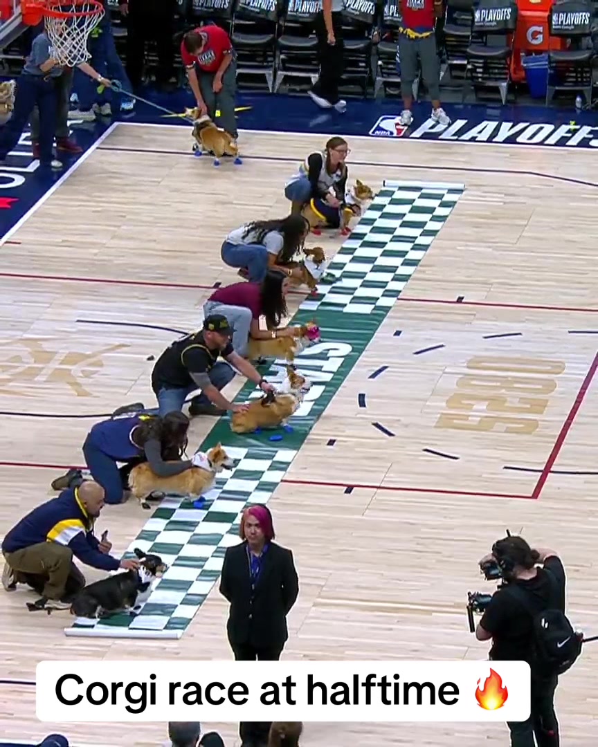 Playoff basketball and Corgi race is an elite combo 🙌 #nba #corgi #denver #nuggets #basketball (via @NBA)